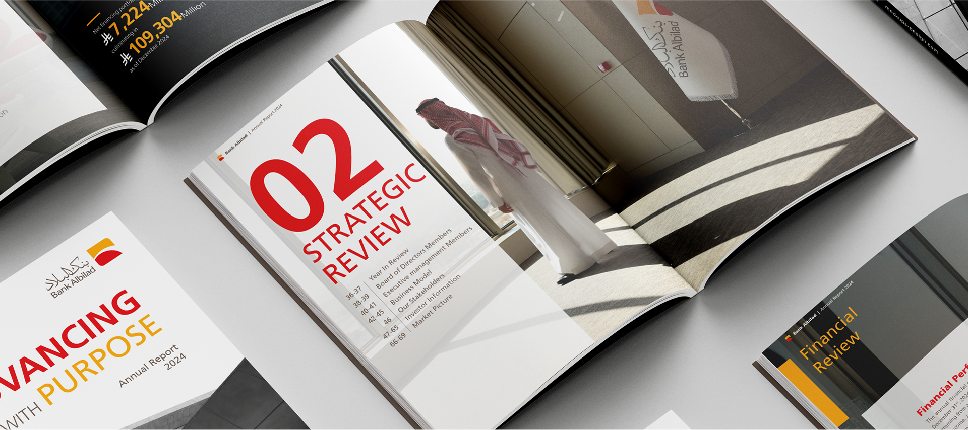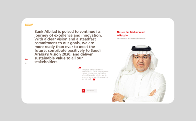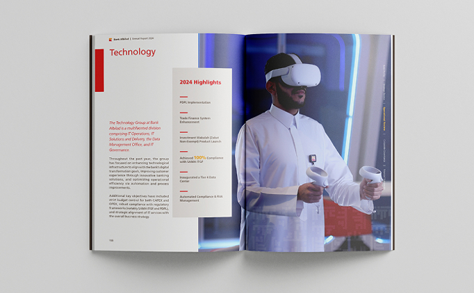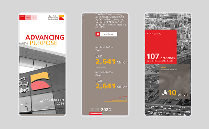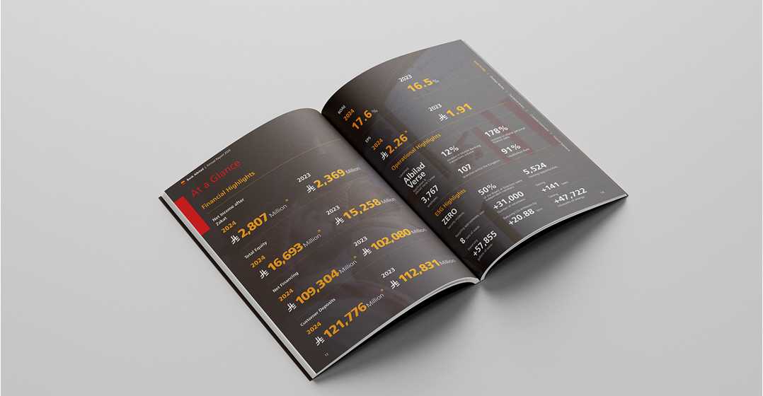 weaving together financial highlights, operational achievements, and future ambitions into a unified narrative. The report combined clean data visualization with refined design elements and accessible language to help investors easily read through key performance indicators and understand Bank Albilad’s forward momentum.
