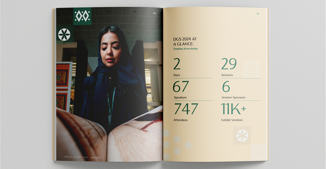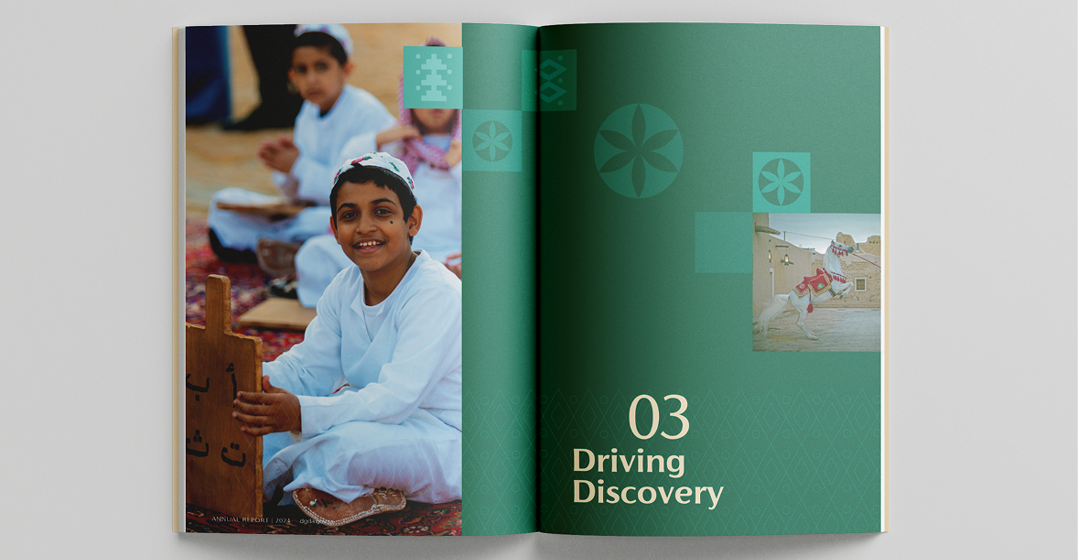 annual report by developing a clear, story-driven structure that balanced cultural richness with modern design. The layout integrated visuals and content to celebrate the people, knowledge, and heritage at the core of the Foundation’s work. It delivered a compelling, human-focused narrative rooted in Diriyah’s cultural identity.