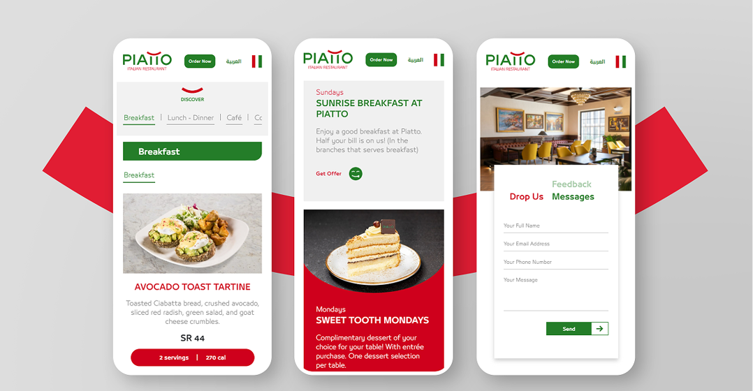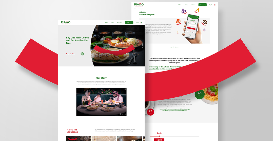 needed a refreshed brand identity and digital platform to enhance market presence. Our purpose was to revamp the outdated brand identity, and create 7 unique themed experiences that reflect Piatto's warmth and authenticity.