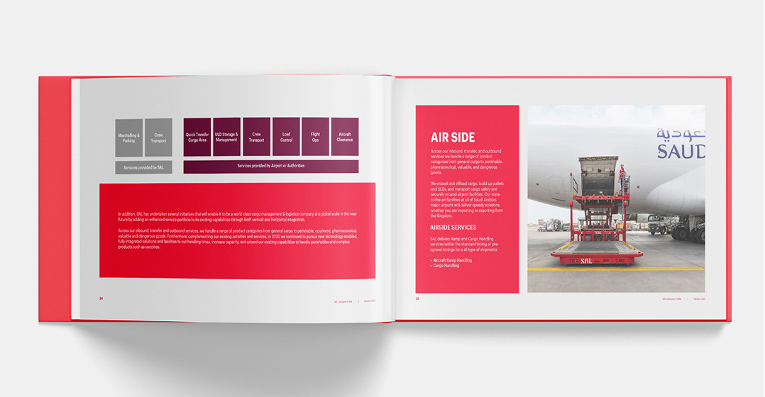 in Saudi Arabia, approached SPARK to create an annual report for 2022 that showcased their ability to deliver across air, land, and sea, emphasizing their operational efficiency and innovative solutions. Our purpose was to design a report that communicated SAL’s impact while reinforcing their position as a trusted partner in logistics.