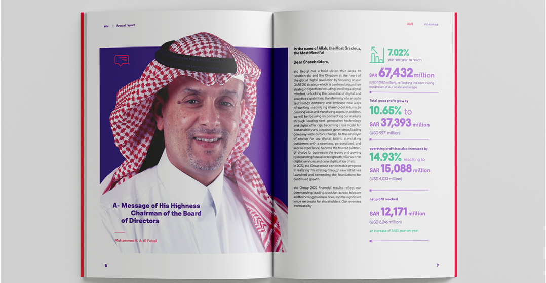 that provided an immersive Digital experience, setting a new benchmark in the industry. Our purpose was to create an annual report that embodied STC’s commitment to innovation and digital transformation, providing a cutting-edge experience for their audience.
